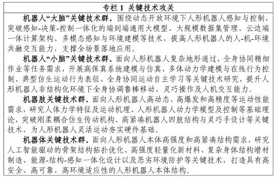 一臺人形機器人,包含數千個零部件,涉及各種尖端技術,堪稱人類生產制造的最先進硬件之一!度诵螜C器人創新發展指導意見》中列出了關鍵技術,大家可以感受一下復雜程度。