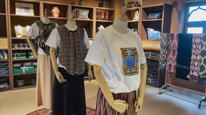 走進古樸雅致的高臺時光文創店,服裝、包包、絲巾、小飾品等以高臺民居字樣、高臺民居圖案、喀什本土文化為元素的各類文創產品整齊地擺放著。每一件散發著濃厚本地特色和文化氣息的文創產品,讓各地游客在游覽喀什的同時,仿佛穿越時空,親身體驗了喀什民俗文化背后的故事和魅力。