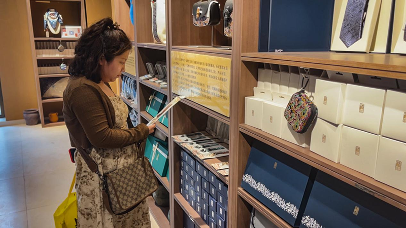 云南游客葉清禾說:“我特別喜歡店里的馬甲,精致的花紋和做工的細節都很不錯。通過這些文創產品,我可以感受到設計師對當地文化的深厚情感和對藝術的追求。在這里不僅是一次物質上的享受,更是精神上的洗禮!