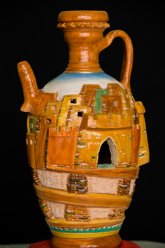 祖里甫卡爾·阿巴拜克力是喀什古城小有名氣的喀什土陶非物質文化遺產第八代傳承人,他對土陶的器型、花色、圖案了然于胸,不僅如此,他也在傳承的基礎上,創新設計出土陶古城、十二木卡姆樂器、民居民宿等土陶制品,讓這一技藝更具現代藝術性。