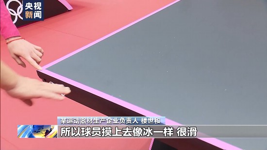 某運動器材生產企業負責人樓世和:表面有高分子特殊處理,球員摸上去像冰一樣,很滑,是最新的技術。