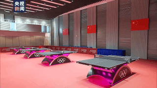 畫面中的4張球臺,就是將在2024年巴黎奧運會上使用的同款球臺。球臺以黑色為主調,粉色為配色,采用了彩虹狀曲線底座。球臺采用自帶芯片的可變燈光系統,能呈現彩色燈光,在運動員出場和賽后,營造出獨特氛圍。