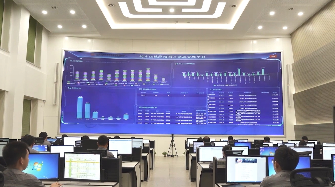 大屏上的車組總覽、安全監測、運維支持、數據分析四大板塊,用數據替列車“說話”,幫助列車千里之外“及時就醫”。