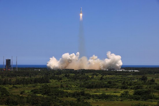 2021年4月29日11時23分,中國空間站天和核心艙在我國文昌航天發射場發射升空,準確進入預定軌道,任務取得成功。