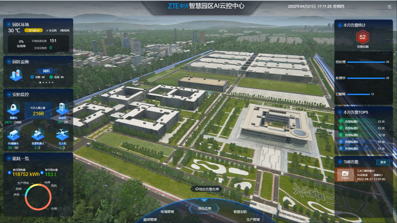 ZTE中興智慧園區AI云控中心。采訪方供圖