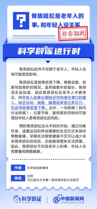 骨質疏松癥并不僅限于老年人,年輕人也有可能受到影響。隨著年齡增長,骨質流失會加速,所以骨質疏松在老年人中更常見。但年輕人如果長期缺乏鈣和維生素D的攝入、缺乏運動、抽煙、酗酒或承受過多壓力,也會導致骨密度下降。此外,一些疾病(如內分泌疾病)、過度節食、服用某些藥物也可能增加年輕人患骨質疏松的風險。