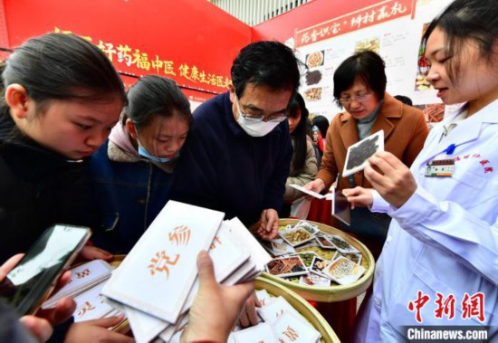 2月15日,兼具知識與趣味的“藥香識寶·辨材贏禮”活動吸引民眾參與。中新社記者 張斌 攝