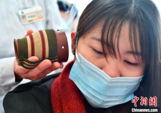 2月15日,民眾在非藥物療法體驗區體驗中醫傳統療法。當日,中醫藥文化集市活動在福州市中醫院五四北院區舉辦?,F場設置了名醫義診區、非藥物療法體驗區、藥食同源品鑒區、中醫藥文化互動區等多個活動區域,提供豐富多樣的中醫藥文化沉浸式體驗,吸引了不少民眾前來參與。中新社記者 張斌 攝