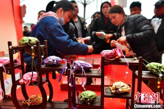 2月15日,民眾在活動上進行香囊 DIY。中新社記者 張斌 攝
