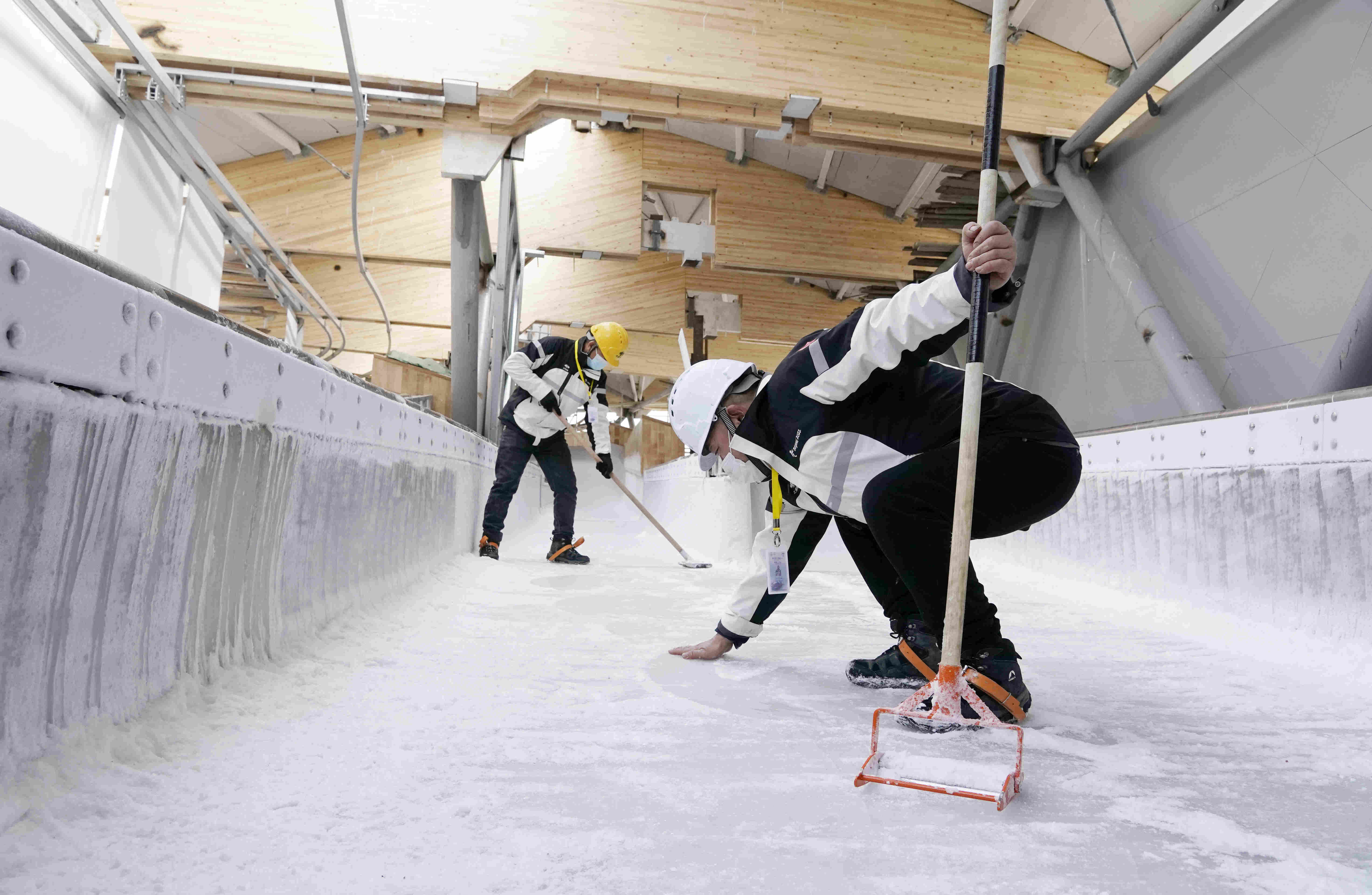 在與氨制冷系統的互相協同下,雪車雪橇賽道的制冰工作高效高質量實施?!把┸囇┣临惖赖闹票啾绕渌线\動,更具有專業性和復雜性,如果冰面出現誤差,可能產生滑行軌跡偏離、運動器材損壞等風險,甚至影響運動員的安全?!敝袊宓V所屬上海寶冶國家雪車雪橇中心項目制冰主管孫悅說道,雪車雪橇賽道制冰工作以毫米為尺,雕刻賽道的每一寸冰面,以精準的中國制冰術為“雪游龍”披上完美的“冰甲”。