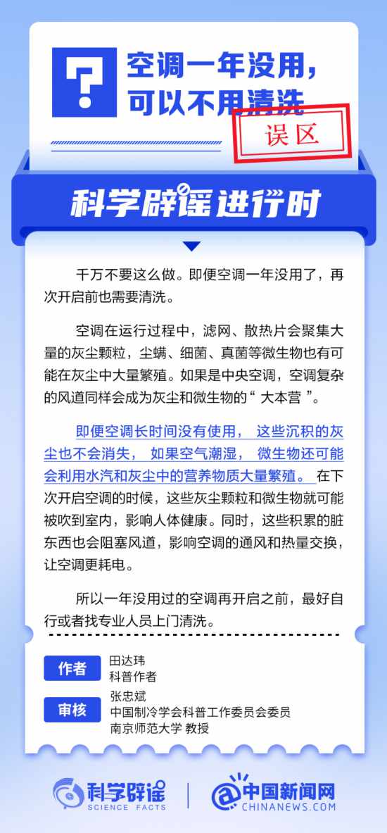 空調一年沒用,可以不用清洗?空調在運行過程中,濾網、散熱片會聚集大量的灰塵顆粒,塵螨、細菌、真菌等微生物也有可能在灰塵中大量繁殖。如果是中央空調,空調復雜的風道同樣會成為灰塵和微生物的“大本營”。下次開啟空調的時候,這些灰塵顆粒和微生物就可能被吹到室內,影響人體健康。所以一年沒用過的空調再開啟之前,最好自行或者找專業人員上門清洗。