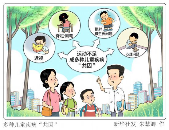 新華社重慶7月20日電(記者谷訓)暑假來臨,重慶醫科大學附屬兒童醫院一些科室迎來就診高峰。近視度數飆升、脊柱彎成“S”形、肥胖引發性早熟、抑郁焦慮情緒蔓延……記者深入眼科、骨科、內分泌科和精神心理科調研發現,這些看似各不相干的疾病背后,竟藏著同一個“元兇”——運動不足。