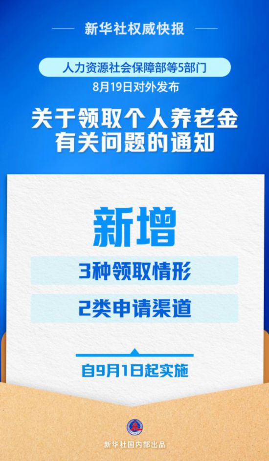 人力資源社會保障部等5部門8月19日對外發布《關于領取個人養老金有關問題的通知》,進一步豐富個人養老金領取情形,明確具體操作辦法,自9月1日起開始實施。