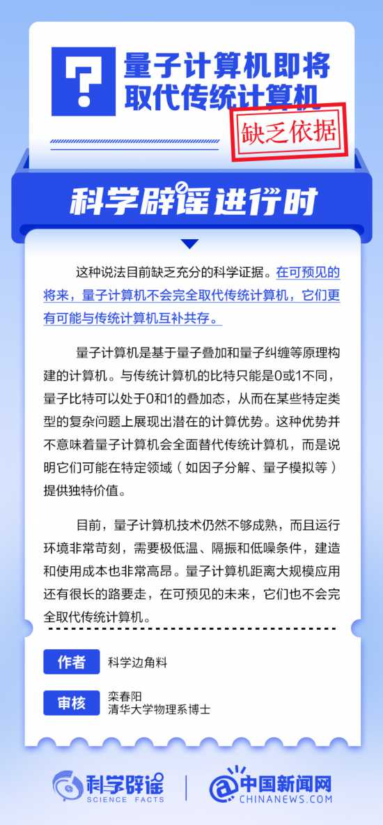 量子計算機離大規模應用還有很長的路要走,在可預見的未來,它們也不會完全取代傳統計算機。量子計算機是基于量子疊加和量子糾纏等原理構建的計算機。與傳統計算機的比特只能是0或1不同,量子比特可以處于0和1的疊加態,從而在某些特定類型的復雜問題上展現出潛在的計算優勢。這種優勢并不意味著量子計算機會全面替代傳統計算機,而是說明它們可能在特定領域提供獨特價值。